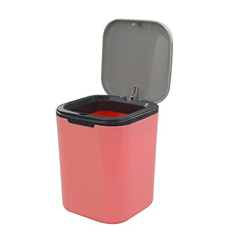 -. Feature : length:5.3" width:5.3" height: 7.1" / lightly press top cover,trash can sP.R.Ing open lid / apply for storage desktop wastepaper / Compact, contemporary swing-top waste can designed for small spaces and under-cabinet use / desktop trash can