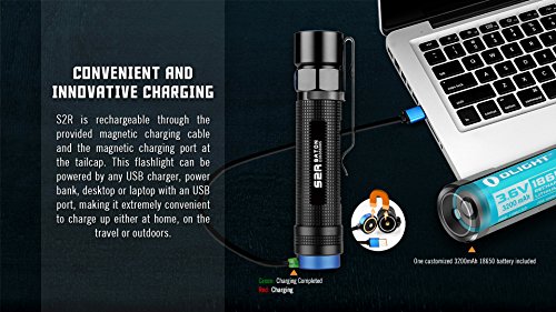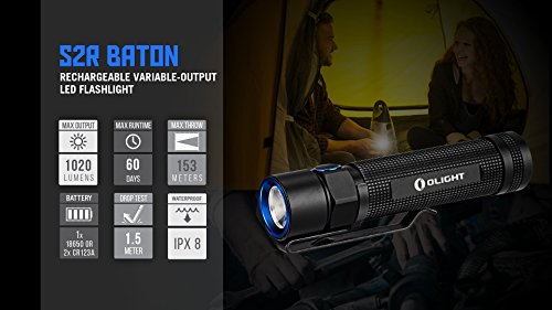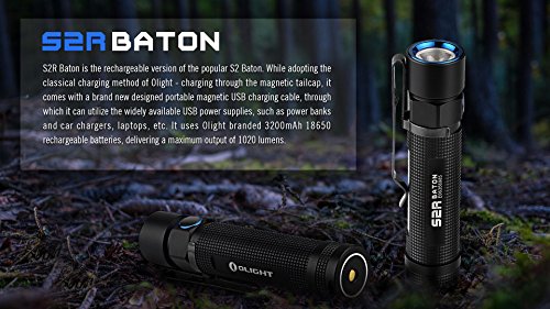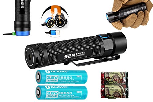Bundle includes Olight S2R flashlight pack with two customized 18650 batteries, USB charging cable and two LegionArms CR123A lithium (backup) batteries