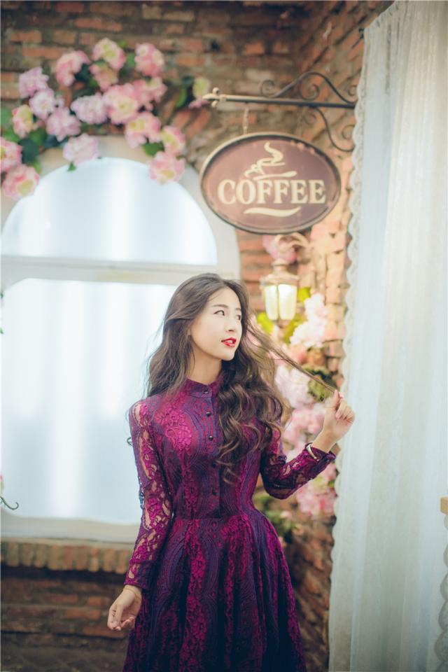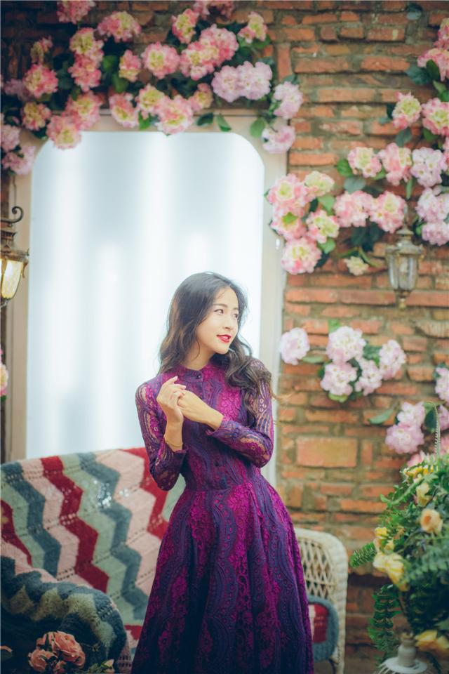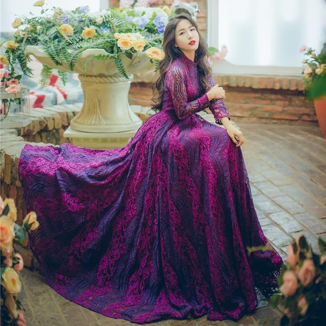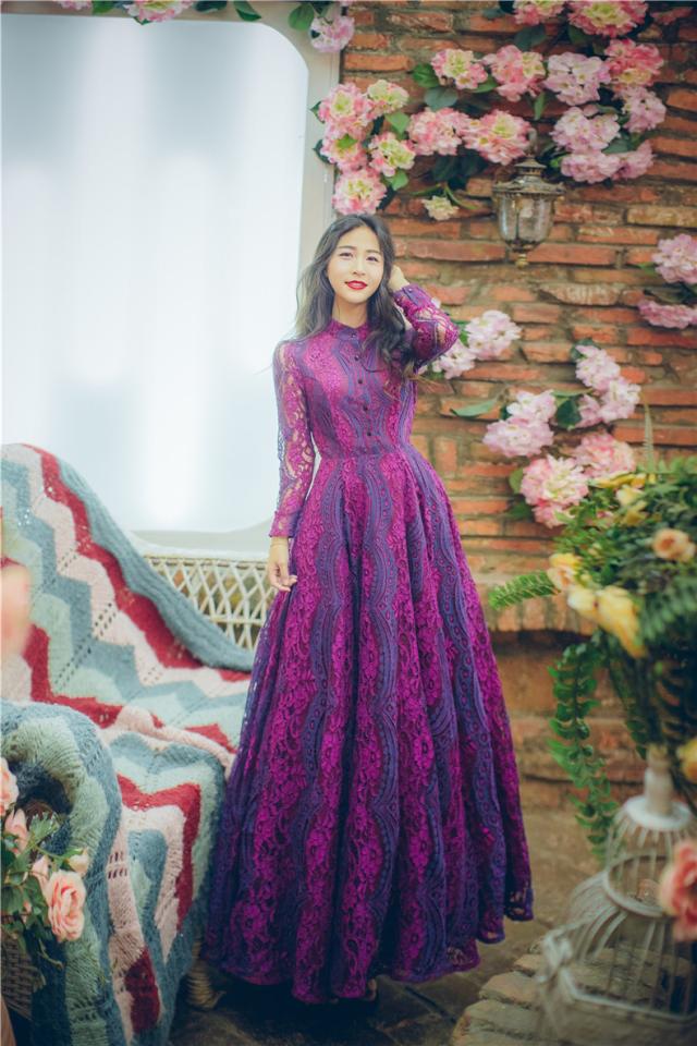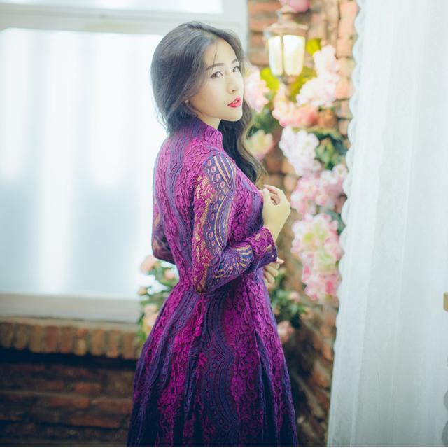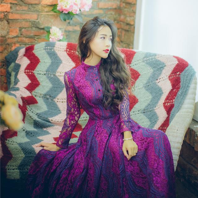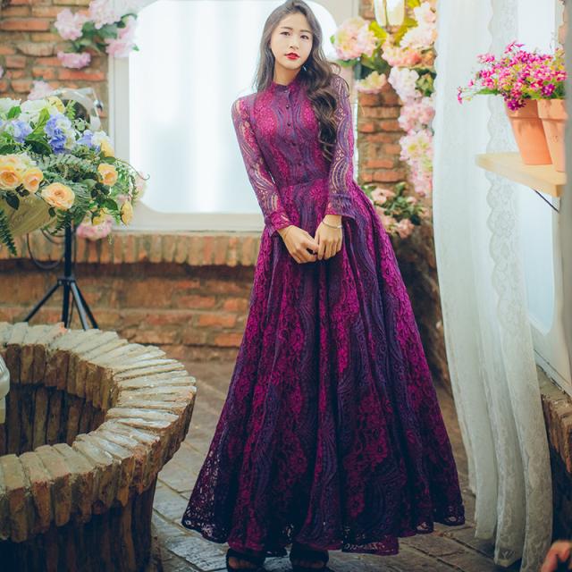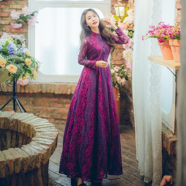 鮮やかな色味に総レースの華やかなロングドレスです。
