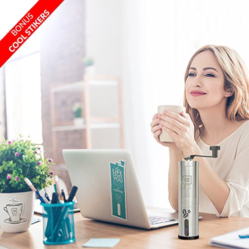 attention to detail and the passion for design, the easy to wash, stainless-steel ergonomic design ceramic burr grinder set will prove to be a great gift for you or your loved ones, transforming mundane chores like coffee making into