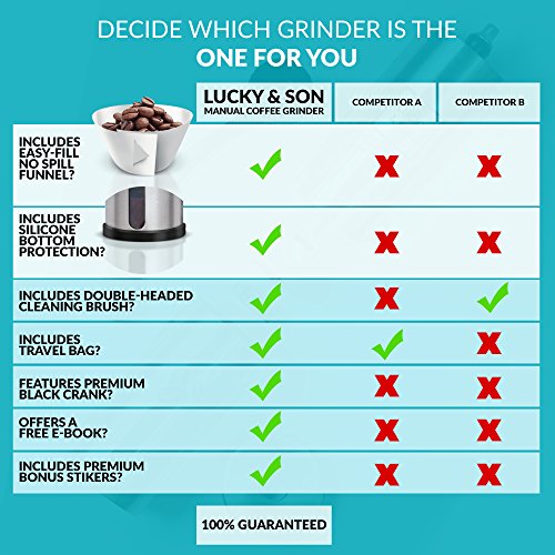 ANTI-SCRATCH, ANTI-SLIP SILICONE BOTTOM PROTECTION; The Lucky & Son silicone bottom ring allows you to safely use and store the manual coffee grinder while keeping your hands, counter and the coffee bean grinder protected