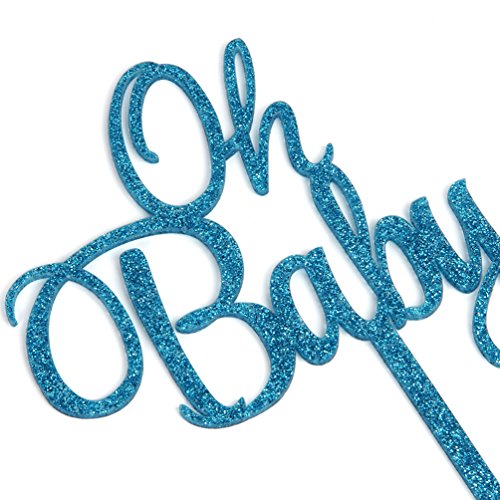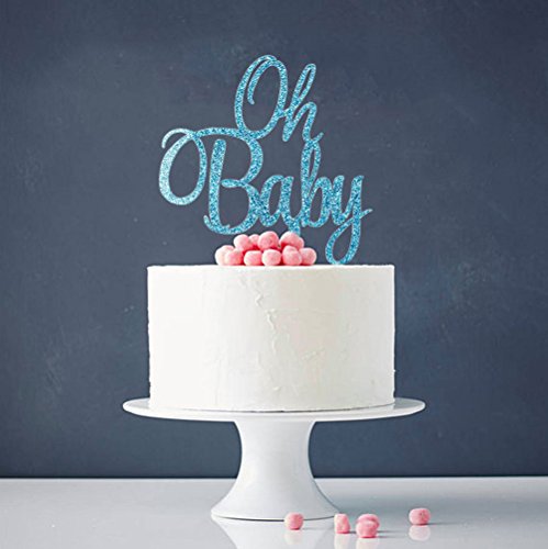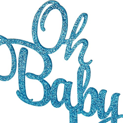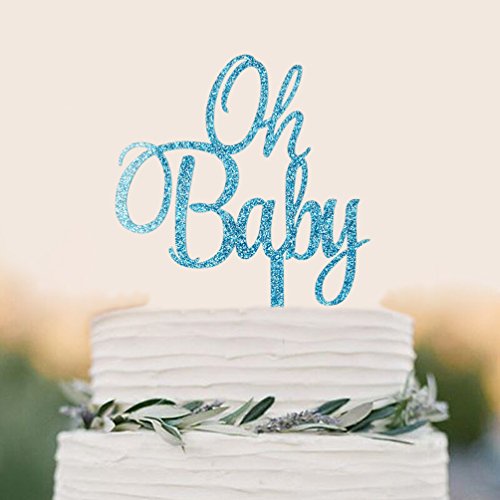 Blue Glitter Oh Baby Cake Topper Boy and Girl Baby Shower Party Supplies Decor