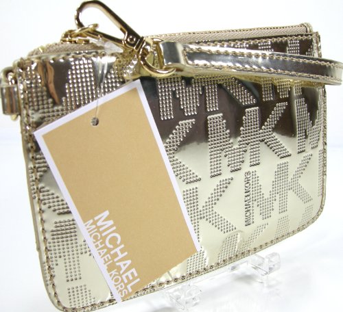 -. Title : Logo MK Wristlet Small Pale Gold