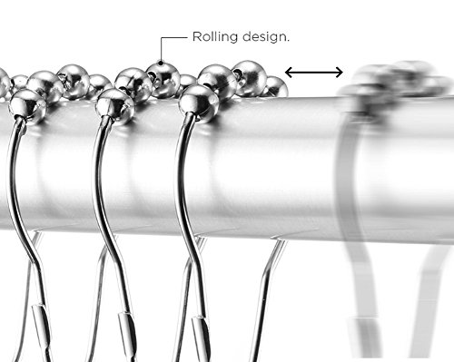 Make from non-magnetic metal(Type 304) is corrosion-free, meaning it will last indoors and outdoors without rusting.The hooks feature acrylic rolling balls with playful pastel color. The colorful balls add brightness to any style of bathroom and complement any type of bathroom curtain. Acrylic plastic plating ensures that the color will not fade with time.