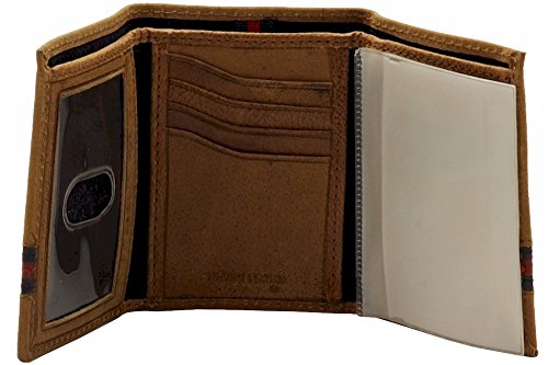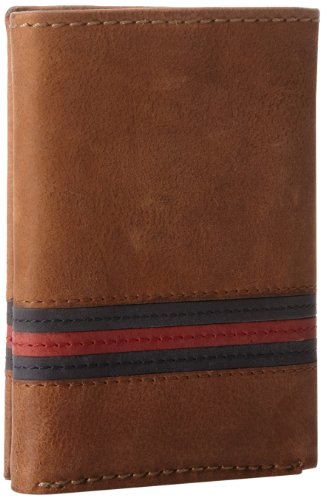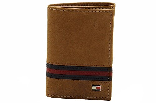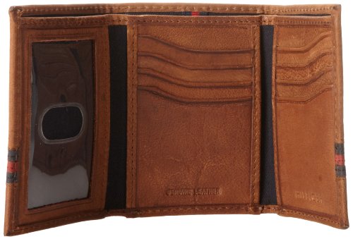 Tommy Hilfiger Men's Leather Yale Trifold Wallet, SaddleTan, One Size