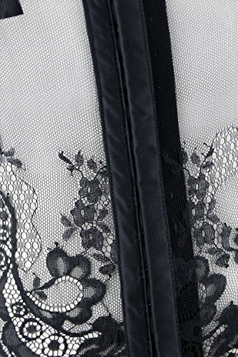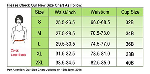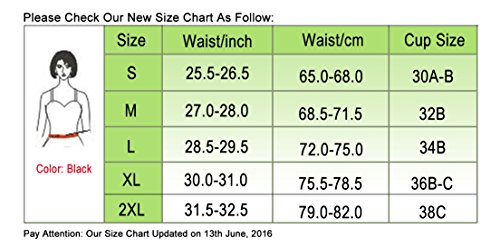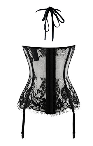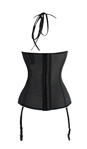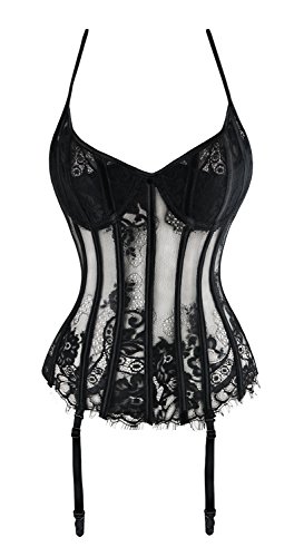 Binding : Apparel Product Description Sexy All Black Bustier Corset Lingerie with a Double Row of Hook-and-Eye Closure at the Back, 80cm Halter, Removable and Adjustable Garters and 6 Plastic Bones for Support(Stockings and G-String are not included). About Size Chart (Tips: Length no includes Straps and Garters) Size Chart(cm) S/Waist: 65-68 , Front Length: 35 , Back Length: 27 M/Waist: 68.5-71.5 , Front Length: 35 , Back Length: 27 L/Waist: 72-75 , Front Length: 35 , Back Length: 27 XL/Waist: 75.5-78.5 , Front Length: 35 , Back Length: 27 2XL/Waist: 79-82 , Front Length: 35 , Back Length: 27 Size Chart(inch) S/Waist: 25.5-26.5 , Front Length: 13.7 , Back Length: 10.6 M/Waist: 27-28 , Front Length: 13.7 , Back Length: 10.6 L/Waist: 28.5-29.5 , Front Length: 13.7 , Back Length: 10.6 XL/Waist: 30-31 , Front Length: 13.7 , Back Length: 10.6 2XL/Waist: 31.5-32.5 , Front Length: 13.7 , Back Length: 10.6 Corset Material: 90% Polyester 5% Cotton 5% Spandex Package Content: 1 x Women Bustier Corset with Garter Belts The real color of the item may be slightly different from the pictures shown on website caused by many factors such as brightness of Your monitor and light brightness. 0