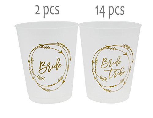 16ct Bachelorette Party Cups – 16oz Reusable Frost Bridal Party Cups for Bridal Shower, Wedding, Engagement, Bachelorette