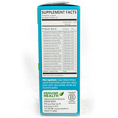 -. Title : Genuine Health Advanced Gut Health Probiotic 15 billion CFU 30 Capsules
