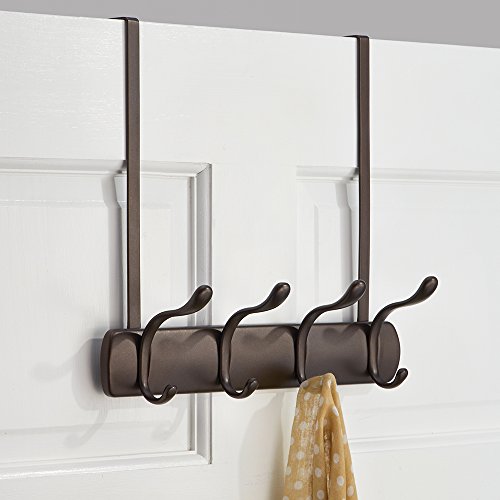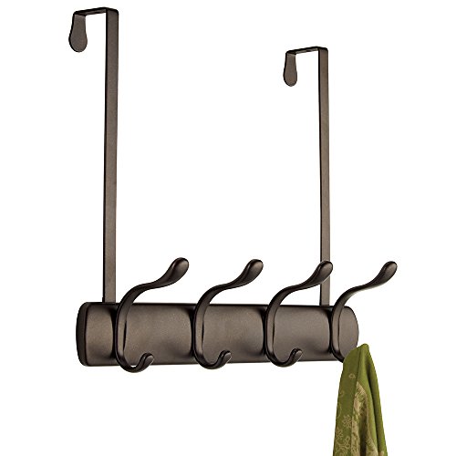 InterDesign Bruschia Over Door Storage Rack – Organizer Hooks for Coats, Hats, Robes, Clothes or Towels – 4 Dual Hooks, Bronze