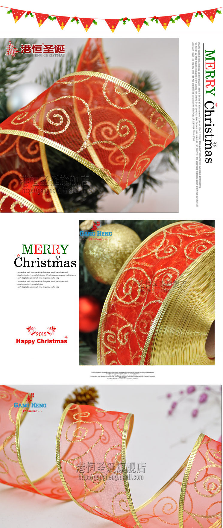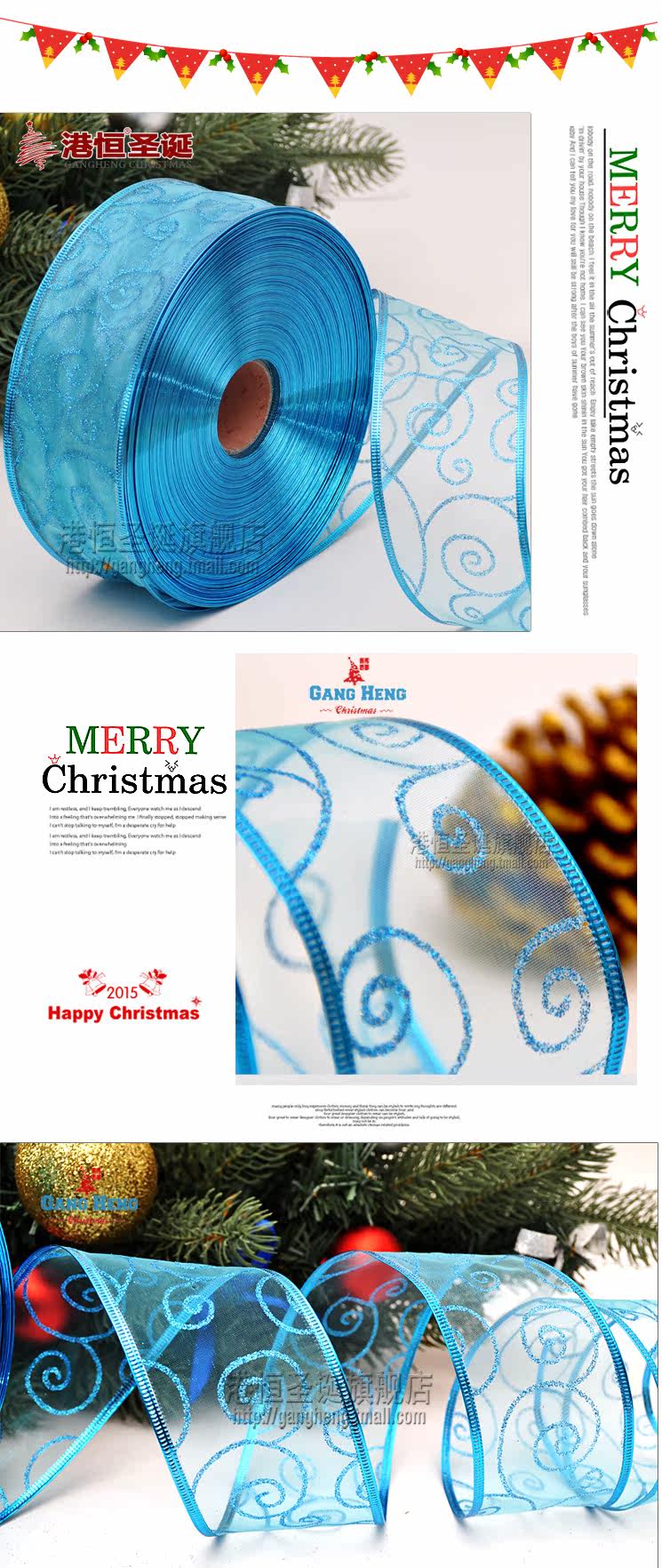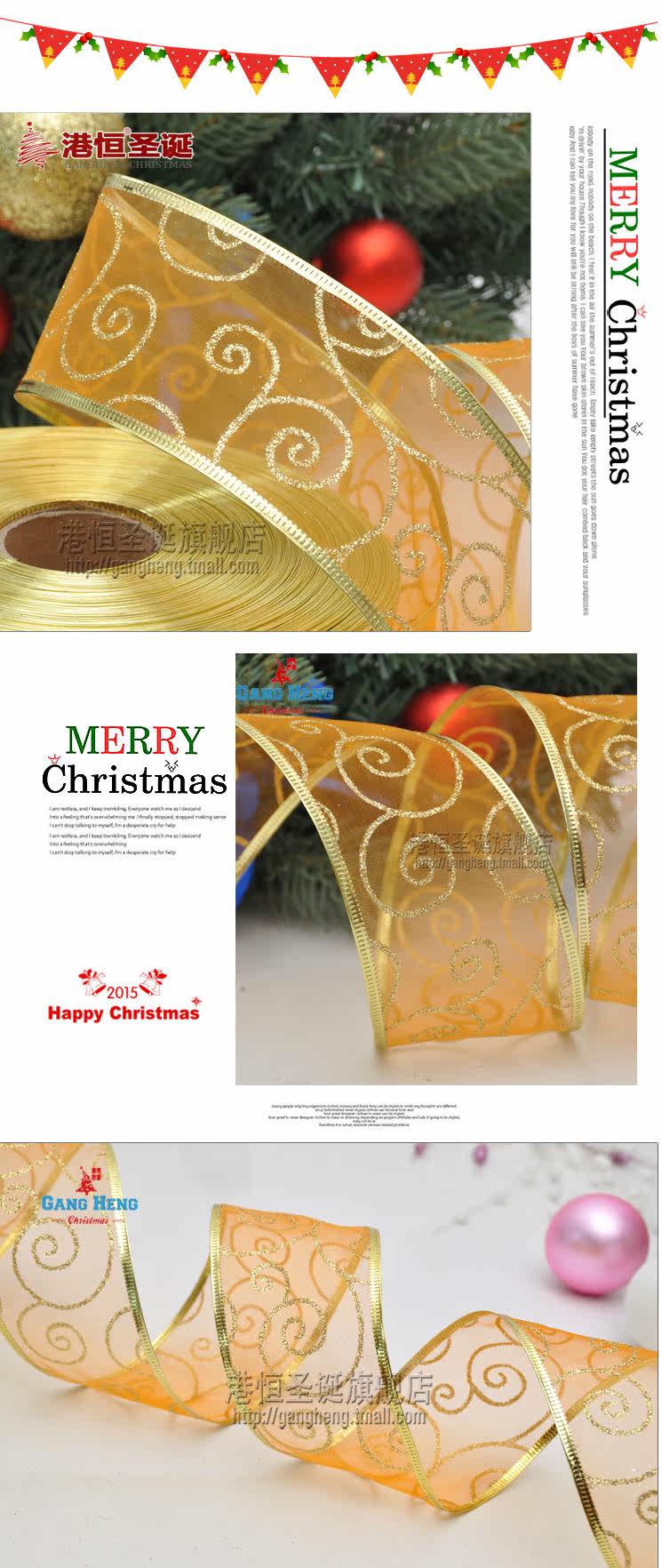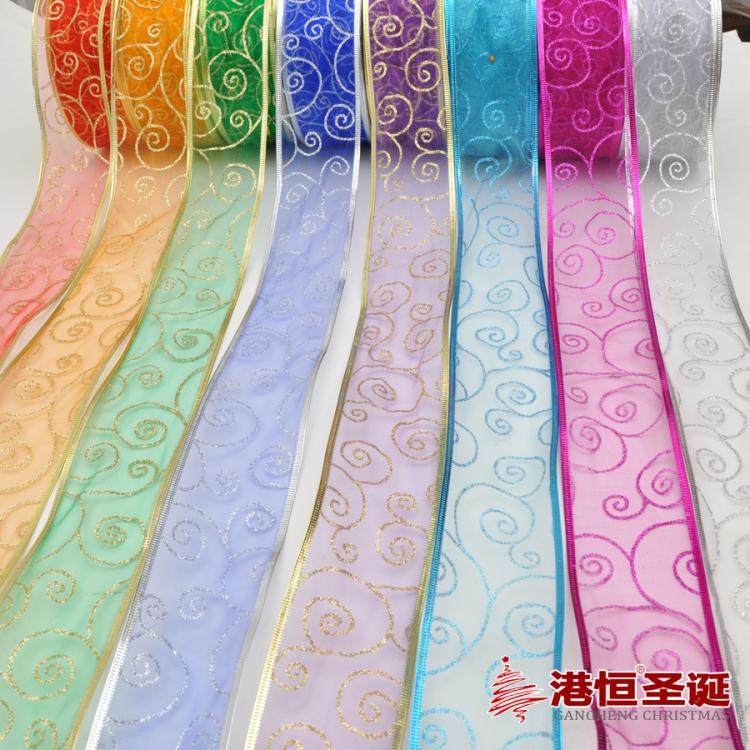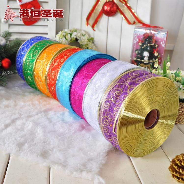 港恒圣诞节装饰用品 200x6.3cm珍珠纱圈圈图案圣诞织带/圣诞丝带