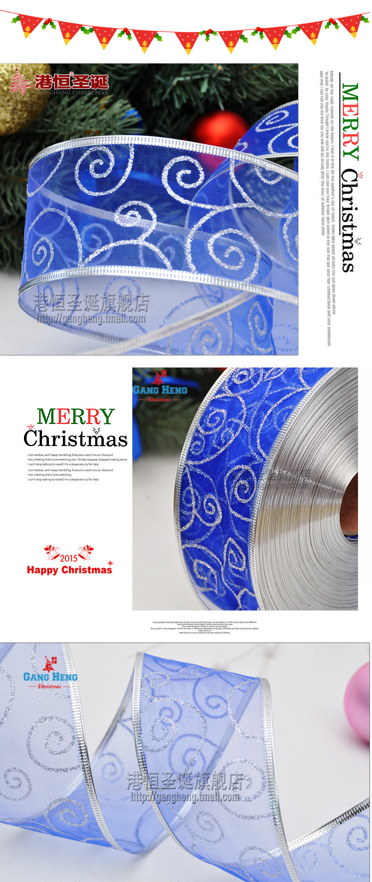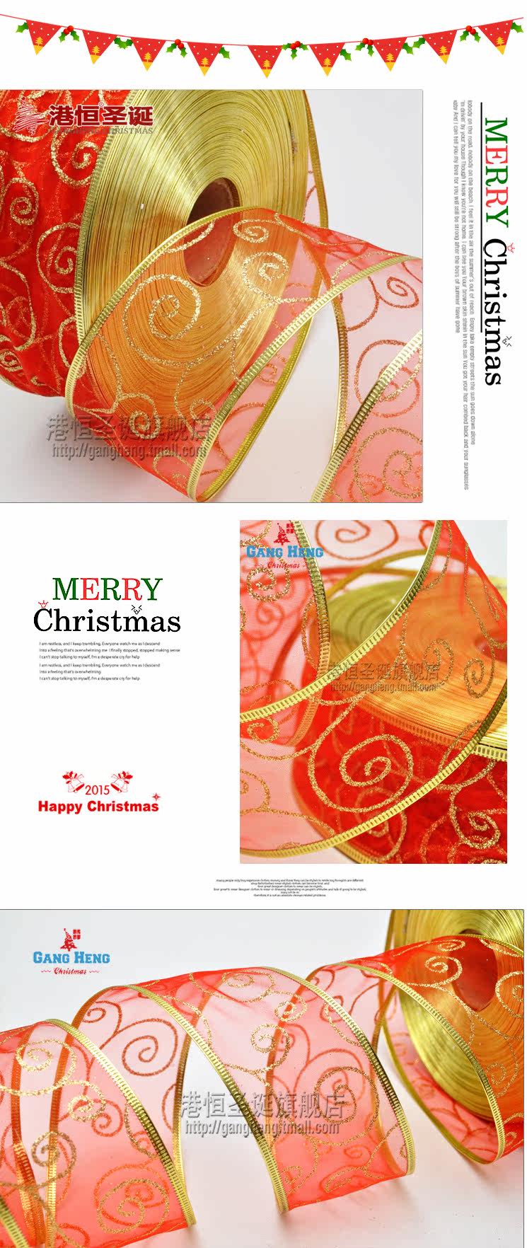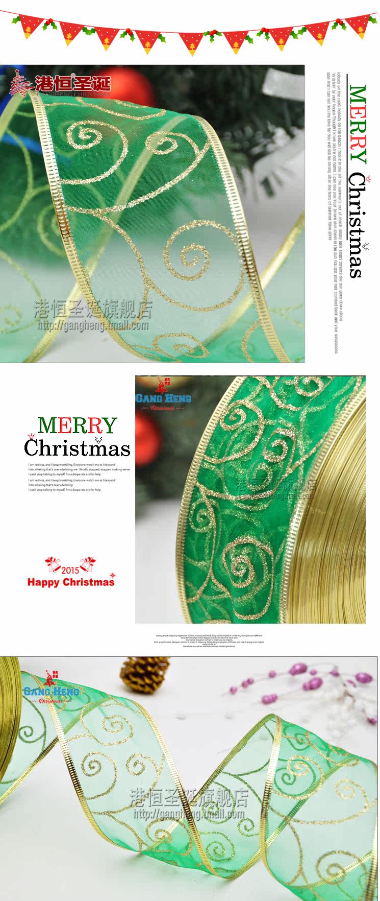 港恒圣诞节装饰用品 200x6.3cm珍珠纱圈圈图案圣诞织带/圣诞丝带