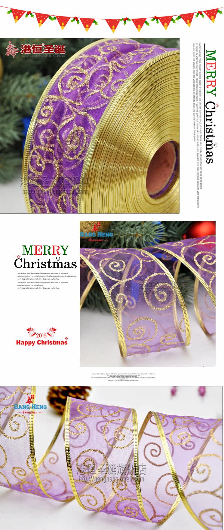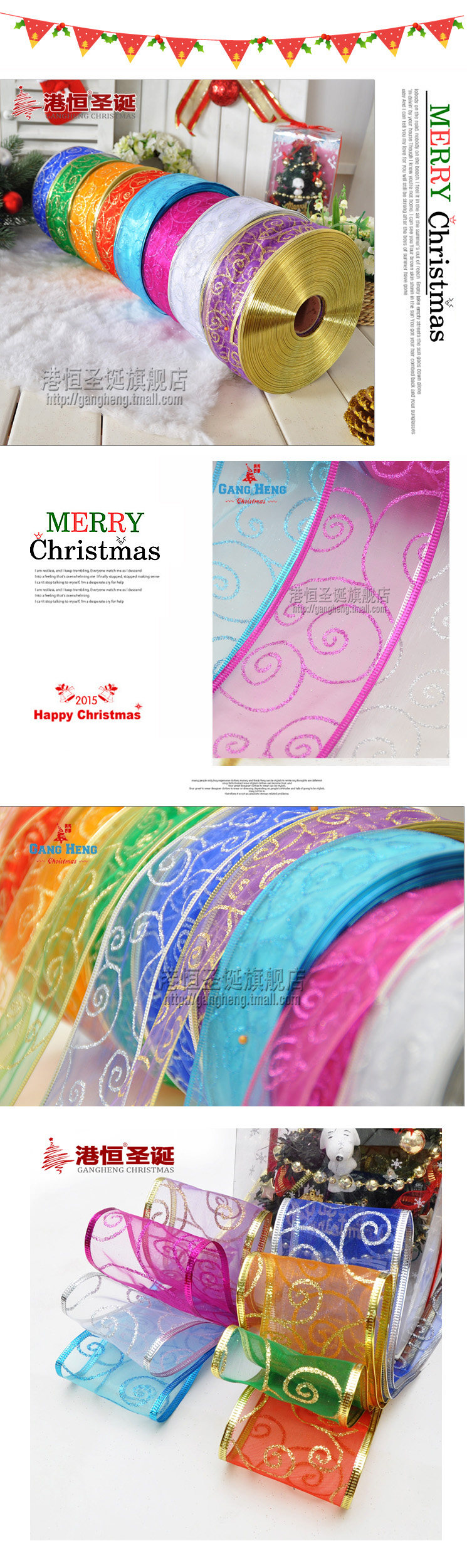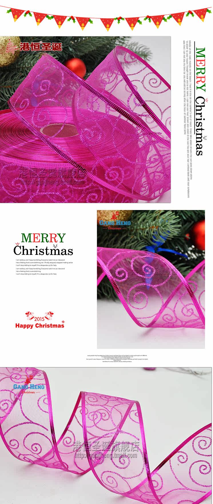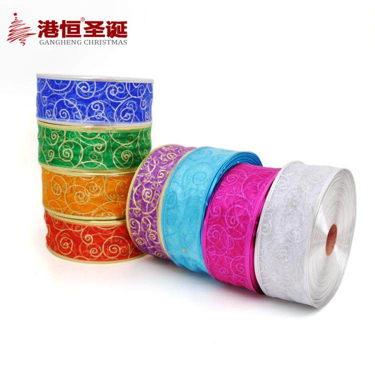 港恒圣诞树装饰 200x5cm珍珠纱葱粉圈圈烫印圣诞彩织带/丝带 10g
