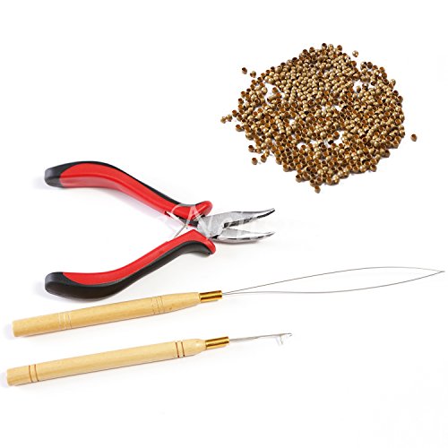 Neitsi Stick Hair Extension Remove Pliers + Pulling Hook + Bead Device Tool Kits for Silicone Micro Rings Beads Loops (with L.Brown# Nano Rings)