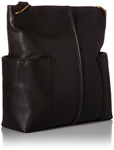 This leather crossbody boasts two exterior slip pockets, two interior slide pockets and an adjustable strap.