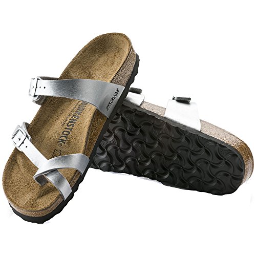 Product DescriptionFor style comfort lovers alike, BIRKENSTOCK brings you the adjustable MAYARI silver toe sleeve thong sandal.0
