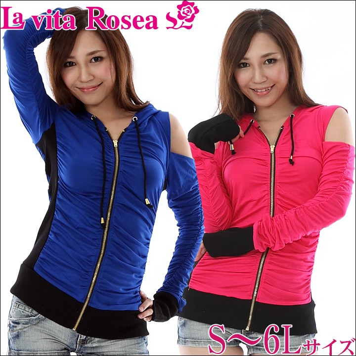 配色ダブルカラージップアップパーカー(PR) 大きいサイズ 春 セクシー レディース ギャル服 ギャル 大人 13号 15号 17号 19号 LL 2L 3L 4L 5L 6L 6L