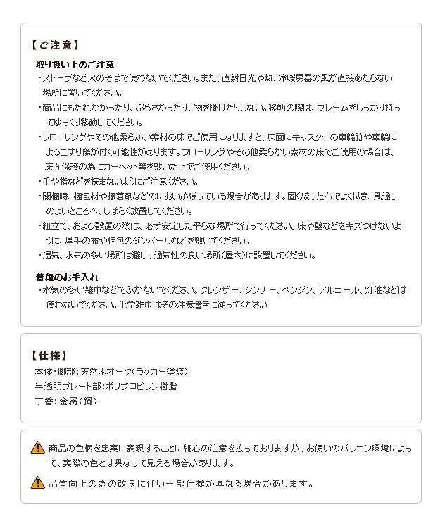 材質:フレーム・脚部-天然木(オーク)・ラッカー塗装、パネル-ポリプロピレン樹脂(半透明)
