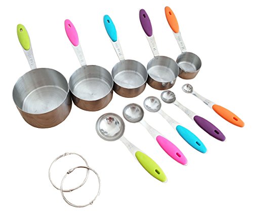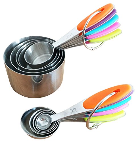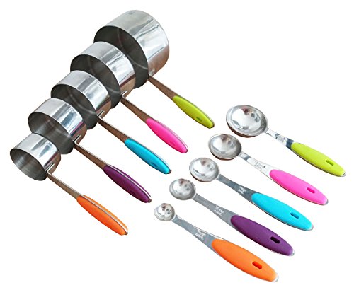 DAISOHOME Measuring Cups and Spoons set - Stainless Steel Measuring Cups set - 10 Piece - Measure Dry and Liquid Ingredients with Soft Handles