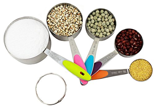 - EASY STORAGE - The spoons and cups are all held together through a strong stainless steel ring with a good locking system so they can be easily stacked and stored with your other kitchen utensils.