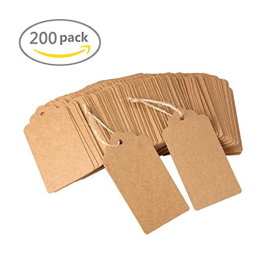 Studio : POP BABY Publisher : POP BABY Binding : Office Product Product Description 200pcs Kraft Paper Gift Tags with Free 200 Root Natural Jute Twine(Water Ripple): Size: 7cm*4cm ( 2.8" X 1.7") Color:Kraft Paper Tag Material:Cardboard.Kraft Paper. These tags are made of brown Kraft card,the tags are perfect for luggage tags, clothing tags, price tags, gift tags, student words cards, bookmarks tags, cupcake toppers,wish trees, thank you notes, journaling, love notes, scrapbooks, etc. In particular, The blank ones ideal to use for customized stamped hang tags, price tags or even product labels. hey are stunning wedding favors that you will be proud to presentto your guests. Package:200pcs Kraft Paper and 200 root Natural Jute Twine 0