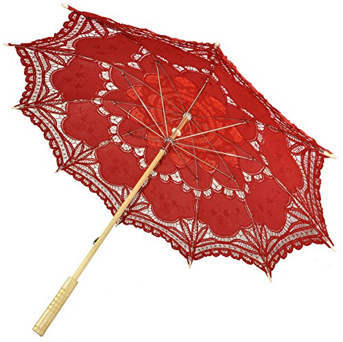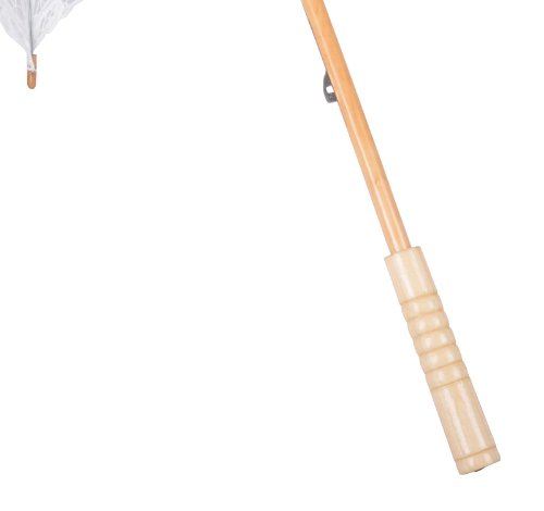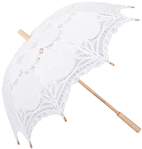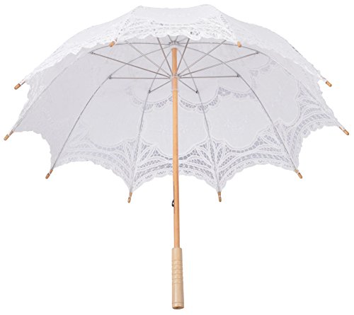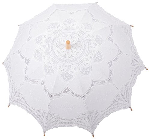 -. Feature : Cotton lace fabric / Durable bamboo handle / Easily foldable metal frame parasol / Wide diameter offers sun & UV ray protection / Perfect classy and elegant sun umbrella for garden strolling, wedding photoshoots, and even as a costume accessory/prop; Please see below product description for more sizing information