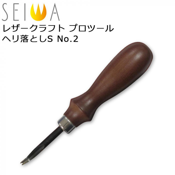 革の断面の角を綺麗に落とします。また鋼材が固く、研ぐことで切れ味を維持できます。 製造国:日本 素材・材質:鉄(先端部:鋼) 付属品:刃研ぎ用耐水ペーパー×1丸棒×1 ※サプライヤー直送品 ※2019年1月中旬入荷分予約受付中【商品名】誠和(SEIWA/セイワ) レザークラフト プロツール ヘリ落としS No.2