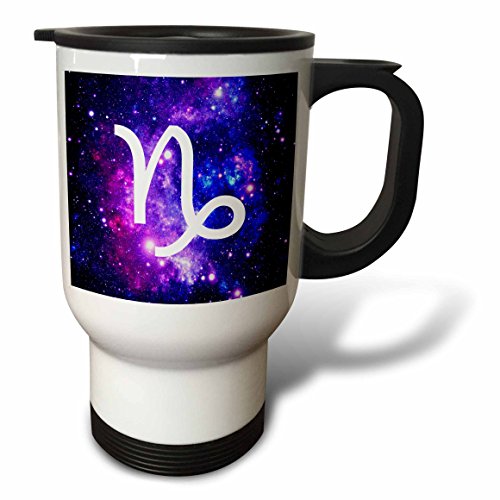 3dRose tm_202154_1 Capricorn Star Sign on Purple Space Background Zodiac Horoscope Symbol Stainless Steel Travel Mug, 14-Ounce, White
