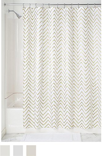 InterDesign Sketched Chevron Soft Fabric Stall Shower Curtain, 54 x 78", Gold