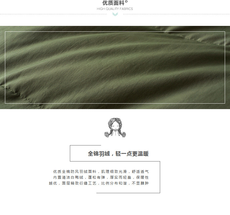 100%锦纶 里料:100%聚酯纤维 填充物:白鸭绒 含绒量:80% 充绒量:157.9g(S) 167.8g(M)177.7g(L)187.6g(XL)