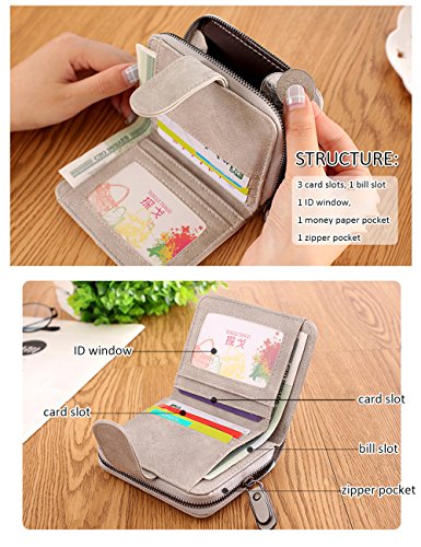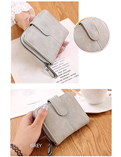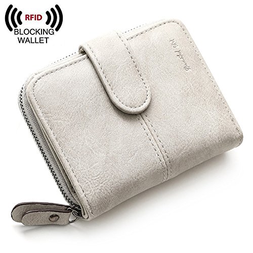 Womens RFID Blocking Soft Matte Leather Bifold Short Wallet Card Holder Zipper Coin Pocket Ladies Girls Travel Purse