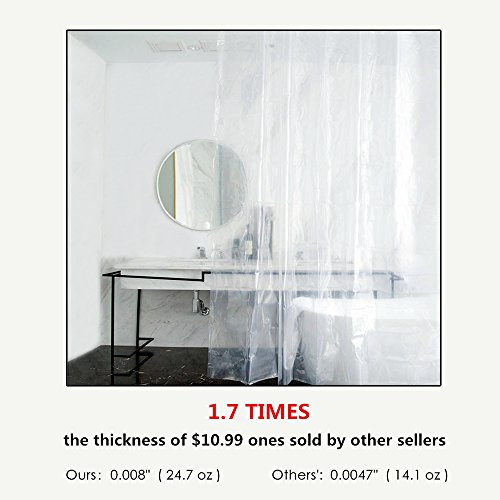 1.7 TIMES THICK Shower Curtain Liner Clear Mildew Resistant Bath Curtain Liner Set with 12 Hooks Waterproof PEVA (72x72 in)-Clear