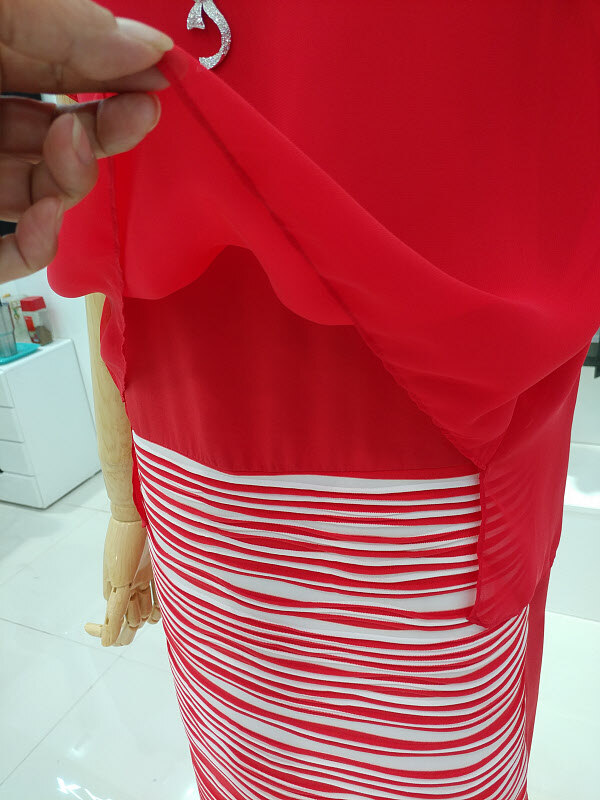 모던한 물결무늬를 유니크하게 표현한 이중 스판 원피스로