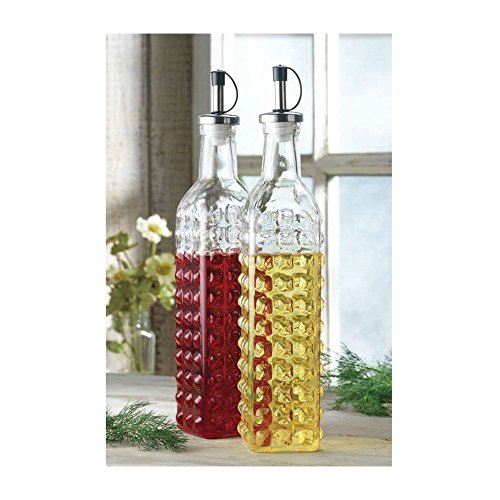 -. Feature : Transparent glass construction / Checkered bumps design / Cap covered pour nozzles prevent mess / Removable gasket sealed tops for refilling / Dishwasher safe