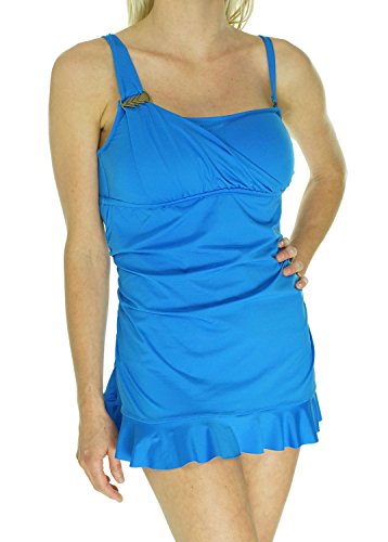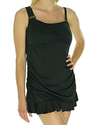 Product Description Asymmetrical one piece swimdress features Color Scheme buckle, removable cups, reinforced side stays, and adjustable, removable strap. Offers power mesh support for tumming slimming benefits. 0