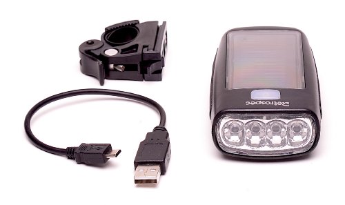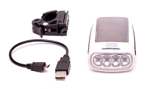 Studio : Retrospec Bicycles Publisher : Retrospec Bicycles Binding : Sports Product Description To be safe while cycling, it is imperative that you can see everything and everything can see you. The innovative Drone-4 Xenon Super Bright White 4-LED Solar Powered Bike Headlight with USB Charging is all you will need for your safety needs. The 4 extremely bright white LED bulbs illuminate the trails before you. And now with the Drone Bike Headlight, you can see and be seen without ever having to worry about dead or dying batteries. Charge your lights using a USB plug and/or the sun. Be safe and forward-thinking with this efficient bike light. 0