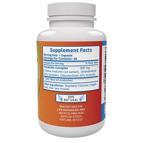 Life Enhanced Pro Pure Forskolin Supplement is a HIGH POTENCY FORMULA designed to maximize results. Standardized to deliver 40% ACTIVE FORSKOLIN unlike other brands with only 10-20%. Plus, each capsule contains 300mg of Forskolin Complex, while most Forskolin for weightloss products contain just 250 mg!
