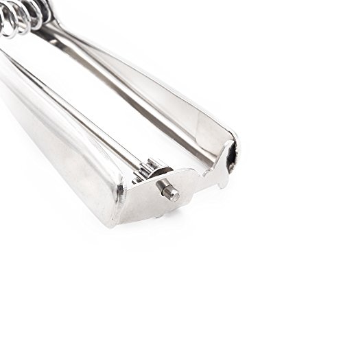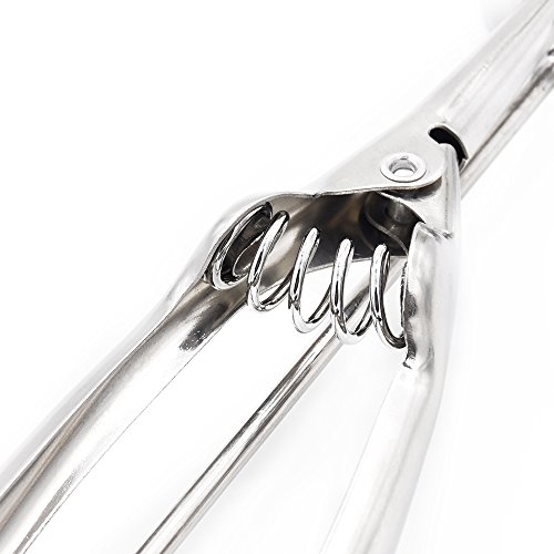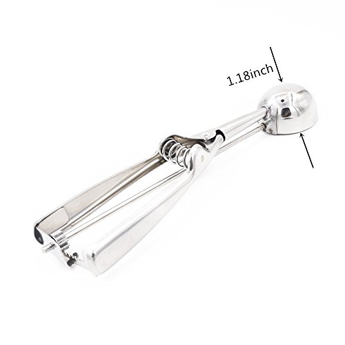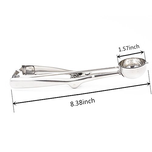 - Feature : ✿ Scoop measures 8.38 inches/21.3cm long. / ✿ Made of stainless steel with a high polish finish. / ✿ Please note:It can't scoop hard ice cream. Please confirm it before you order this item. / ✿ Heavy-duty spring action releases food by sliding band beneath it. / ✿ Ideal for scooping ice cream, cookie dough, making meatballs and fruit balls.
