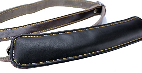 -. Feature : Premium Quality Handmade Dark Brown Leather Strap with Buckle / Vintage type Skinny "Slash" style strap / Extra Long-Adjustable from 47"-61" / Double Reinforced End Caps / Comfortable Padded Shoulder Piece