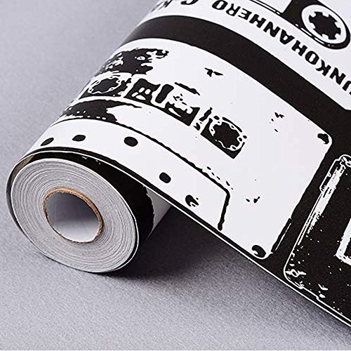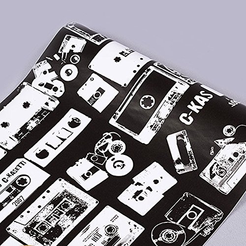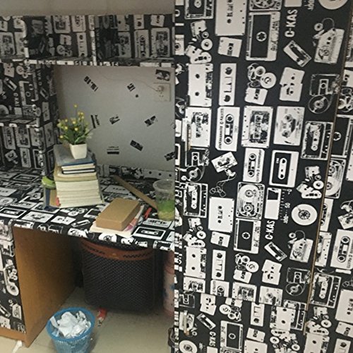 -. Title : SimpleLife4U Vintage Cassette Self-Adhesive Shelf Liner Black and White Contact Paper Decor End Table Sticker 17.7 Inch by 13 Feet