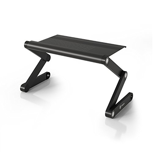 LIGHT WEIGHT, HIGH STRENGTH ALUMINUM TRAY, STURDY FULLY ADJUSTABLE LEGS - Makes Carrying Easy and Holds Your Computer Firm and Steady. Rotate 360 Degrees and Lock in Place at Various Angles. Quickly Collapse The Stand to Make it Portable.