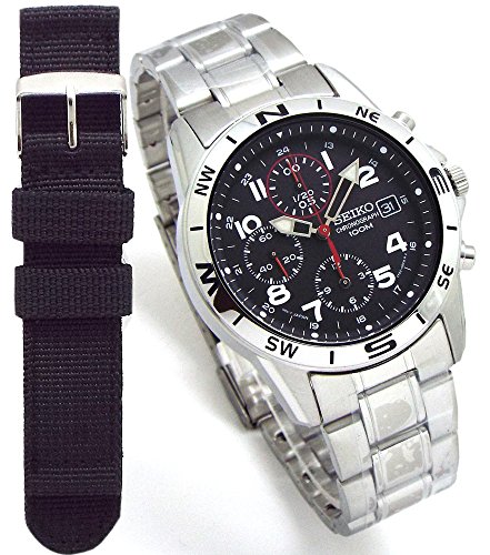 -. Feature : 直径約39mm クロノグラフ搭載 メンズモデル ミリタリー調ベルト付(出荷時はメタルベルト装着状態) / 安心の国内セイコー時計㈱の保証対応となります。 専用BOX 日本国内専用保証書 / オールステンレススチール 100m防水 デート表示機能 蓄光インデックス スモールセコンド / 3ツ折れダブルロック式バックル ノベルティのミリタリー調ベルトは当店が用意したベルトとなります。 / 日本語正規取扱説明書付