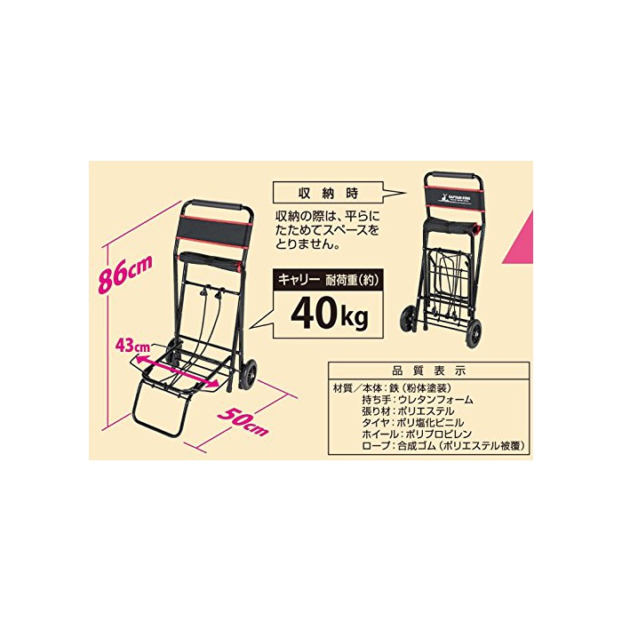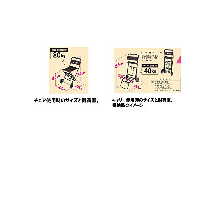 제품 사이즈:체어 조립 시(약)폭430×(길이)깊이500×높이740mm,캐리 조립 시(약)폭430×(길이)깊이500×높이860mm,수납 사이즈(약)860×430×두께160mm