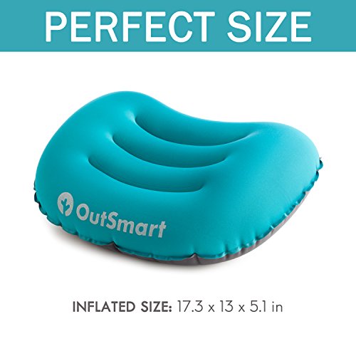 COMFORTABLE & ERGONOMIC: The OutSmart Inflatable Camping Pillow is the best choice when you go backpacking. It has an ergonomic design, carefully engineered to support your head while keeping it in place. It truly is THE BEST INFLATABLE TRAVEL PILLOW for back, side and stomach sleepers or lumbar support. Simply adjust the desired level of inflation. Fully inflated, it has the following dimensions: 17.3 x 13 x 5.1 in