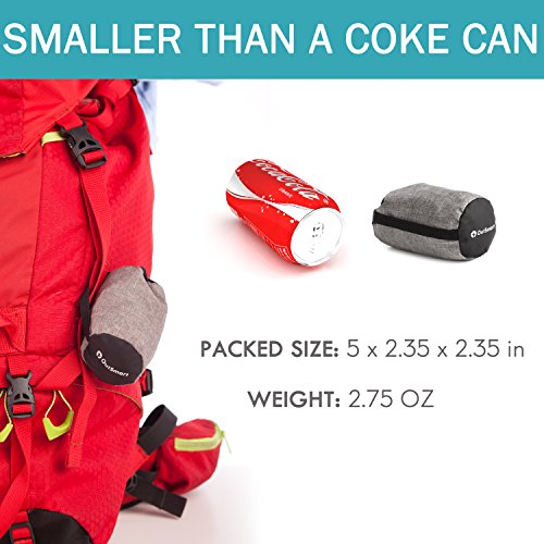 ULTRALIGHT & COMPACT BACKPACKING GEAR: With a weight of only 2.75oz it is the lightest camp pillow on the market. After you fold it and slide it in it`s specially designed compression pouch, it takes less space than a soda can (only 5 x 2.35 x 2.35 in). This means you will take this inflatable pillow in your backpack wherever you go
