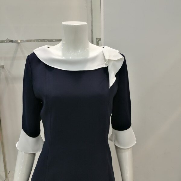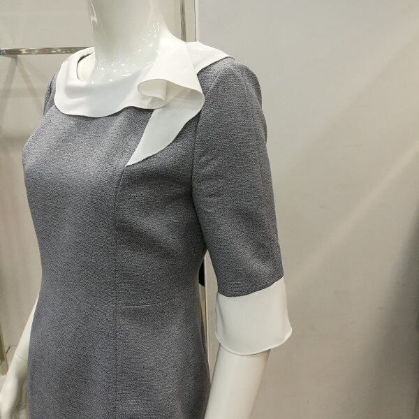카라가 프릴로 꼬리가 달려있어 여성스러우며 슬림핏이라 날씬해보이고 세련되었다.