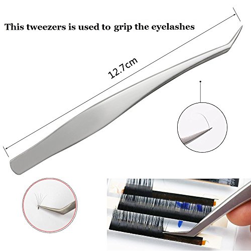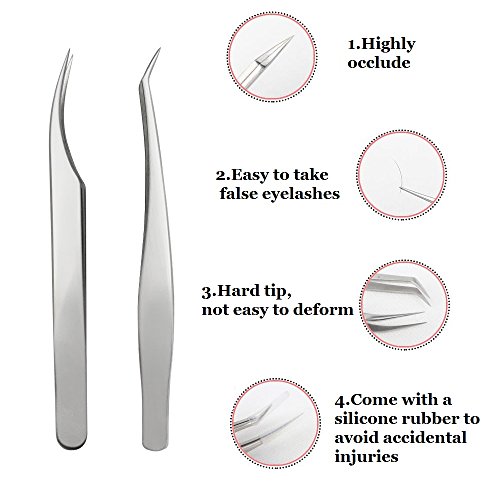 SelfTek 2Pcs Eyelash Tweezers Curved and Cross False Lash Tweezers