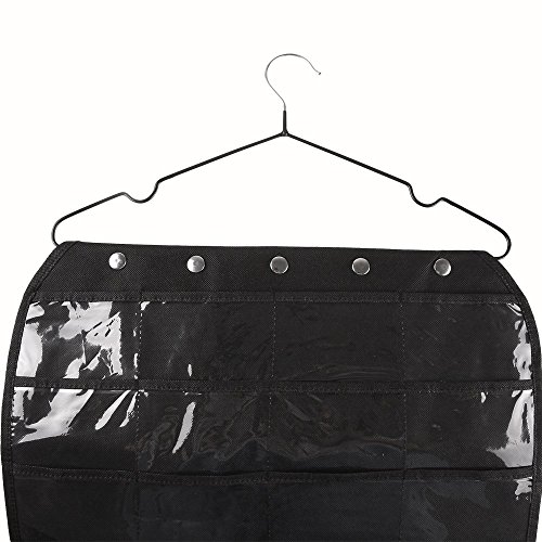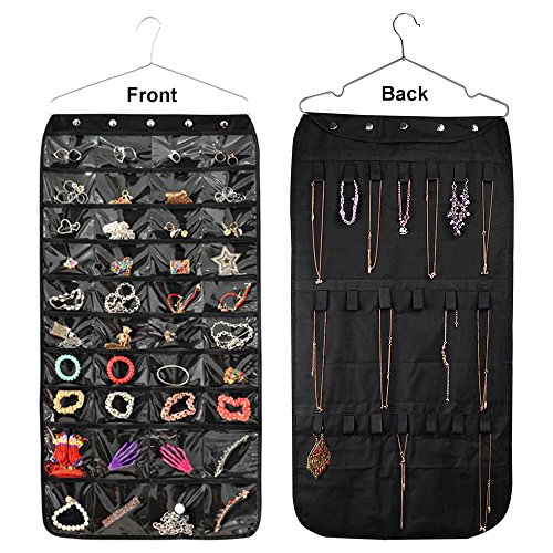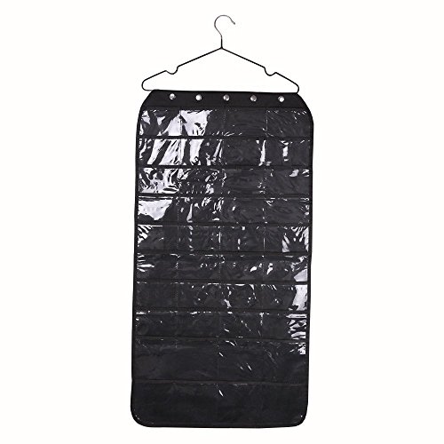 Hanging Jewelry Organizer Double Sided 40 Pockets & 20 Magic Tape Hook Storage Bag Closet Storage for Earrings Necklace Bracelet Ring Display Pouch-Huston Lowell (Black)
