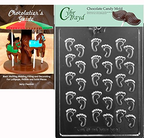 CybrTrayd Baby Feet Decos Chocolate Candy Mold with Chocolatier's Guide Instructions Manual, Clear