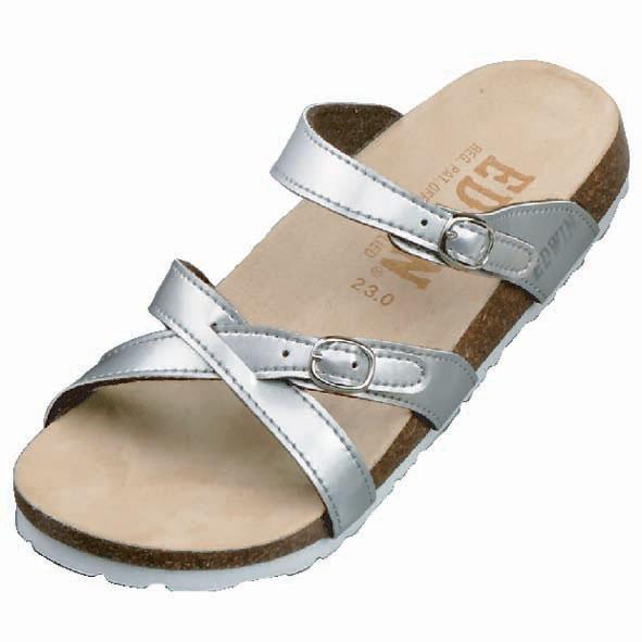 | ネックバンドが足を包み込むようにフィットし、華奢なデザインが女性らしさをアップ。足裏の形に立体的に合わせたフットベットで、歩行による体重移動をスムーズにサポートします。 |