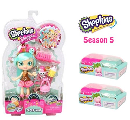 SHOPKINS SEASON 5 BLIND 2-PACK (TWO 2-PACKS!!) + PEPPA-MINT SHOPPIE!